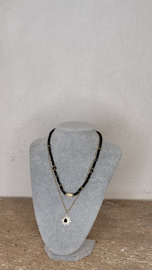 COLLIER CORDON NOIR ET PENDENTIF SOLEIL