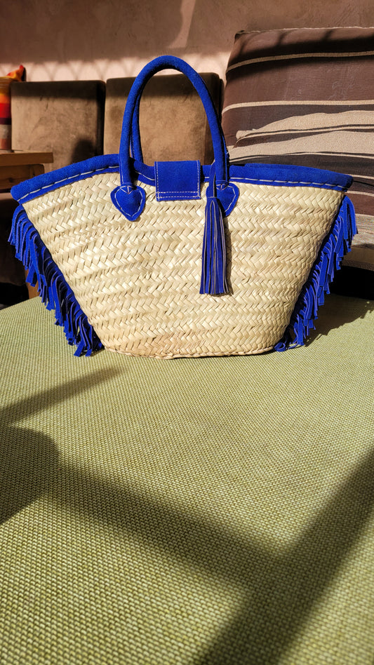 Panier en Osier et Daim — Vannerie Artisanale Marocaine en Feuille de Doum