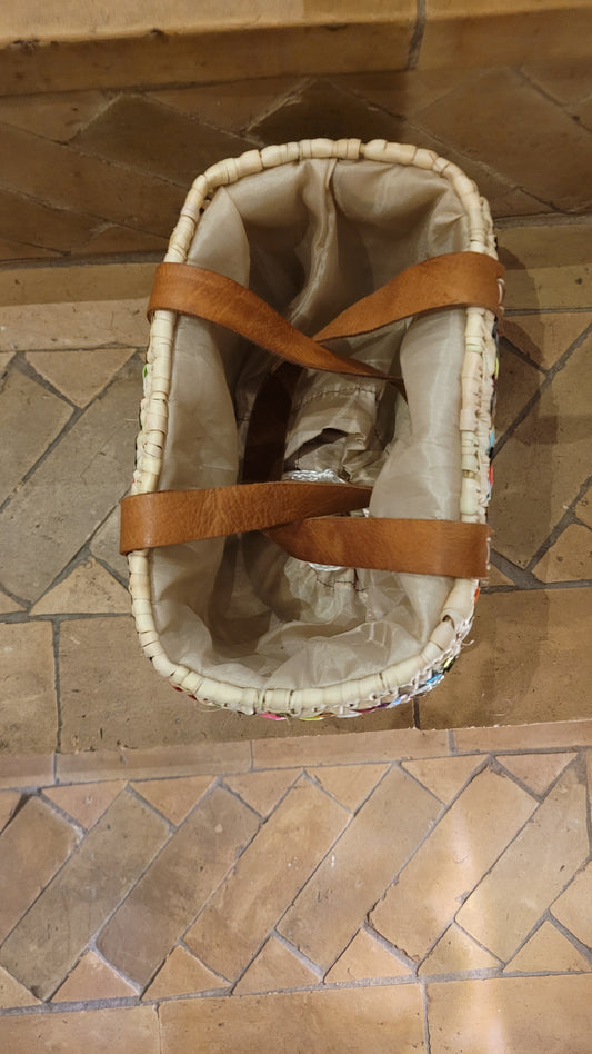 Panier en Doum Ajouré à Paillettes — Cabas Artisanal Marocain avec Anses en Cuir