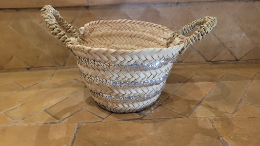 Petit Panier en Osier à Paillettes — Rangement Décoratif & Artisanal