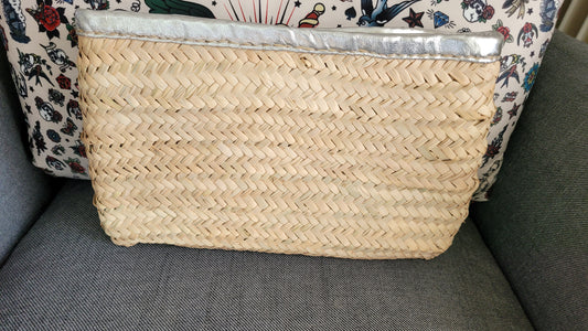 Pochette en Osier Brodée & Pailletée — Artisanale du Maroc
