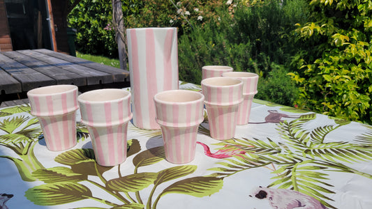 Service Carafe Rayée & 6 Verres — Poterie Artisanale & Design Unique