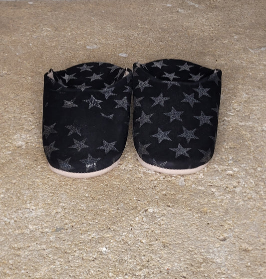 Babouches en Daim Noir Étoiles Argent — Artisanales & Fait Main au Maroc
