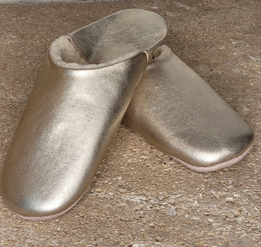 Babouches en Cuir Doré Fourrées — Artisanales & Confort Haut de Gamme