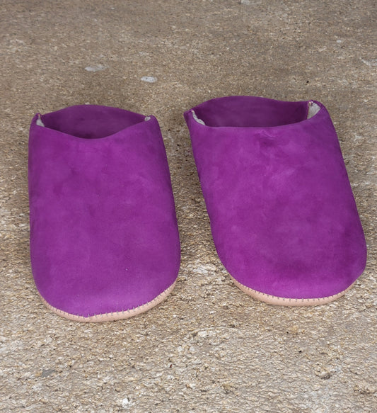 Babouches en Daim Fuschia Fourrées — Artisanales & Chaudes Fait Main au Maroc