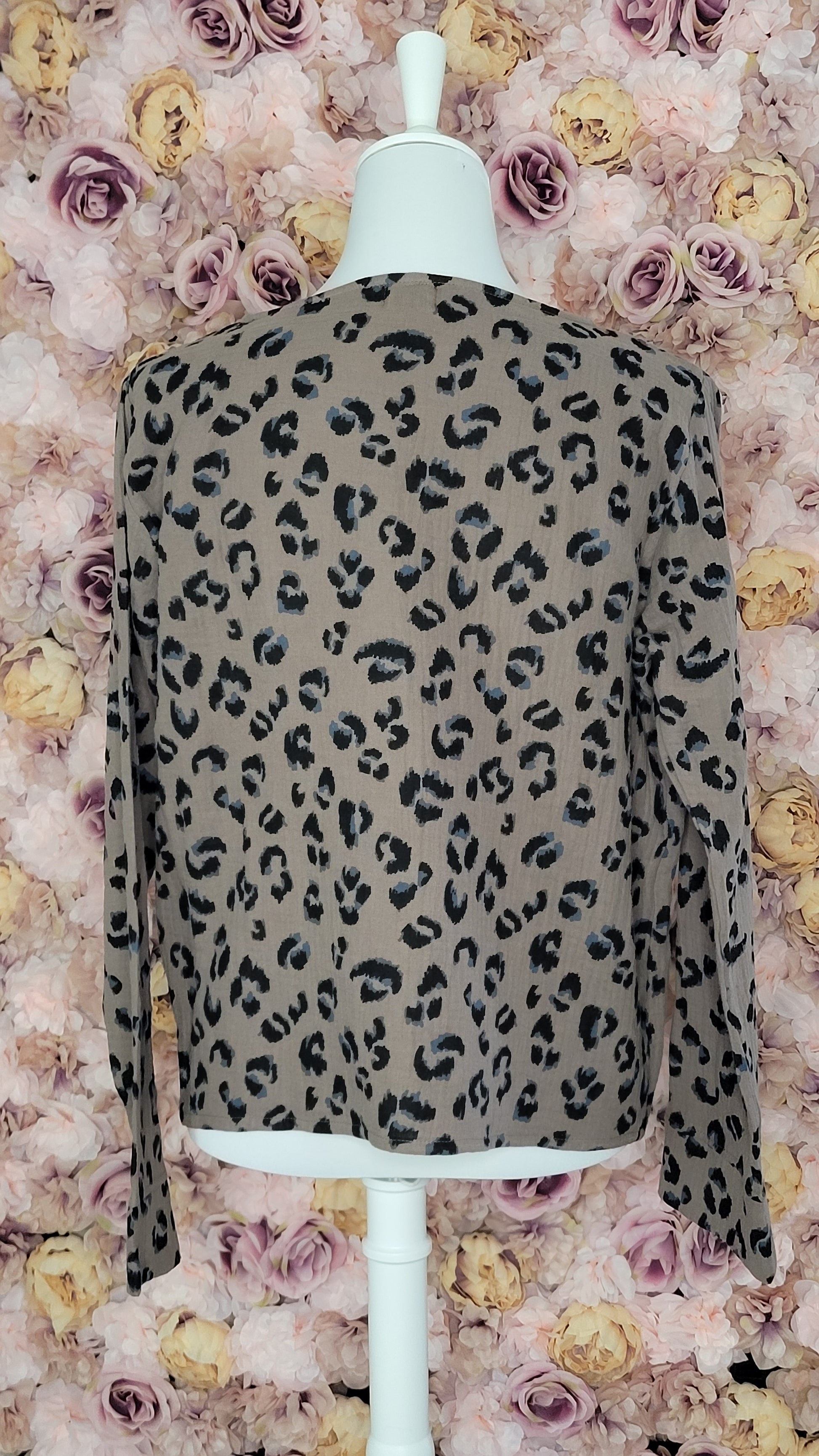 Blouse LEO – Gaze de coton imprimé léopard taupe et noir