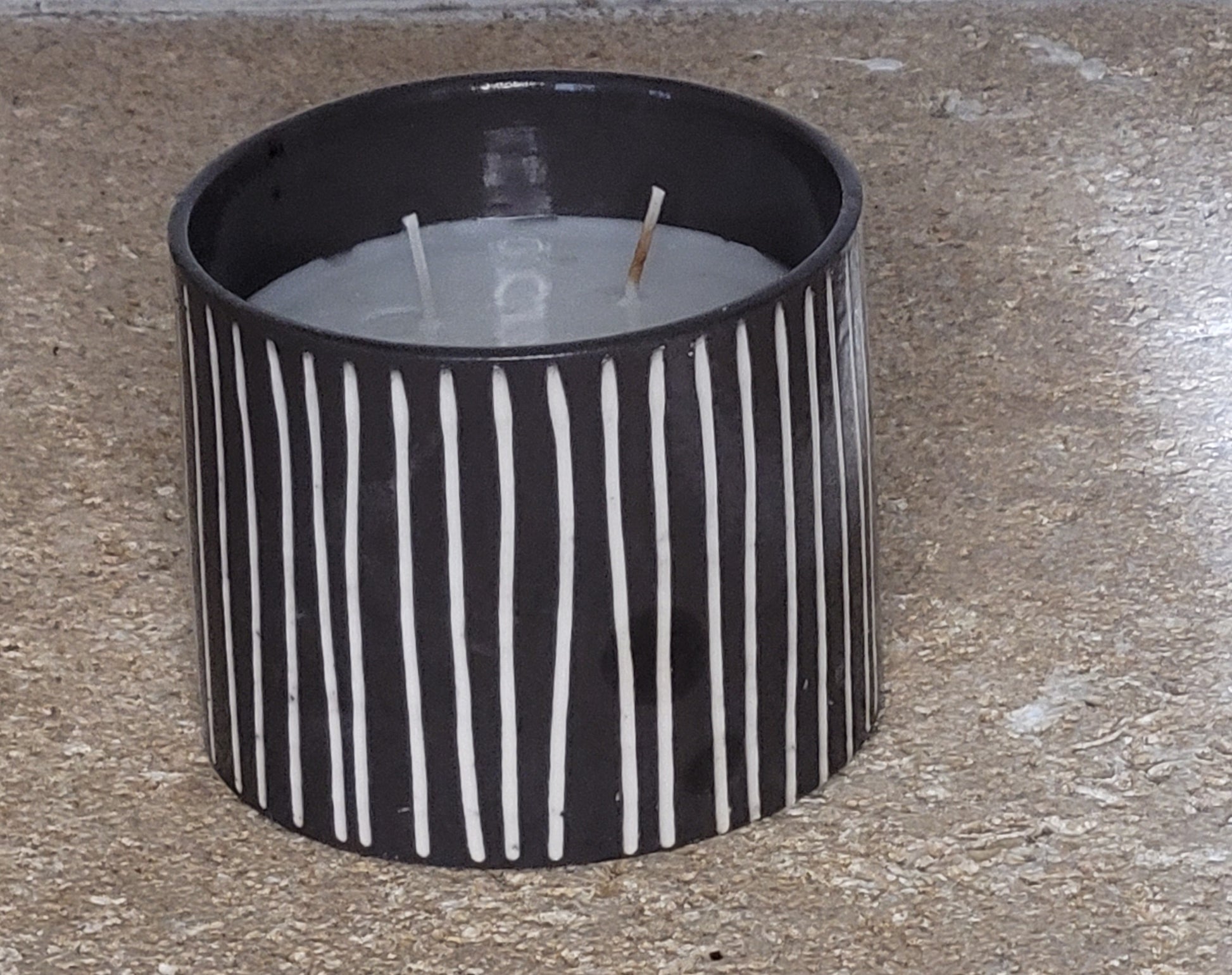 Bougie artisanale en céramique grise rayée – Senteur Jasmin