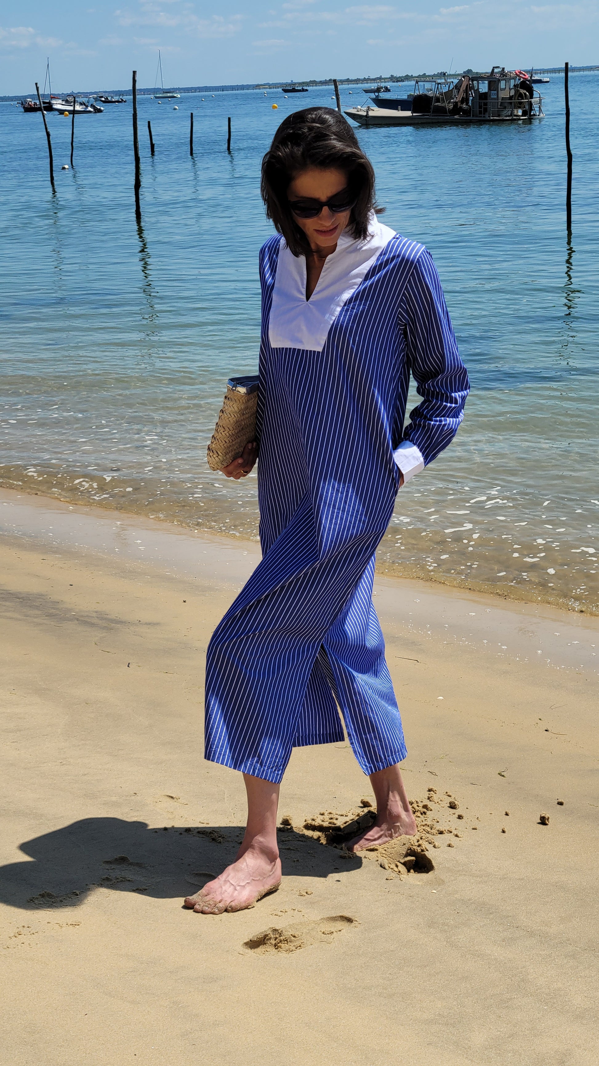 Robe Longue Chemise Col Mao en Coton "SONIA" — Chic & Confortable