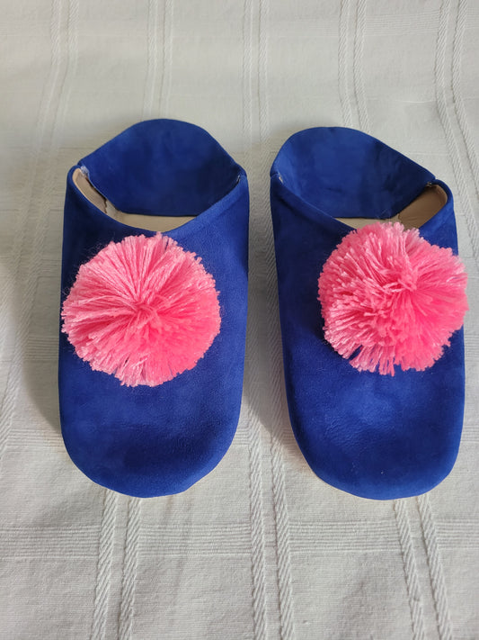 Babouches artisanales bleu Majorelle avec pompon – Cuir authentique