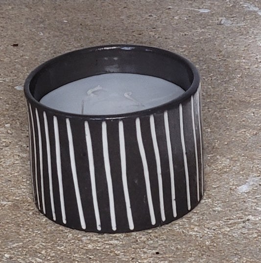 Bougie artisanale en céramique grise rayée – Senteur Jasmin